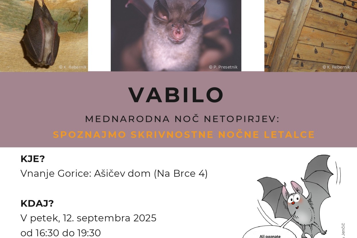 SPOZNAVANJE SKRIVNOSTNIH NOČNIH LETALCEV Mednarodna noč netopirjev v Vnanjih Goricah [Preberi več ...]