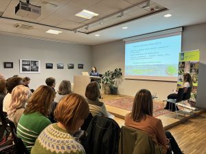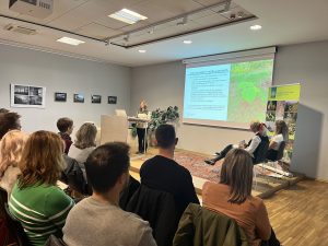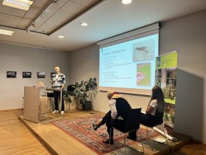 Marija Kolšek (ZGS) o Varstvu pred ITR v okviru gospodarjenja z gozdovi (levo) in Andrej Štembergar Zupan (ZRSVN) o močvirskemu škarjarju.